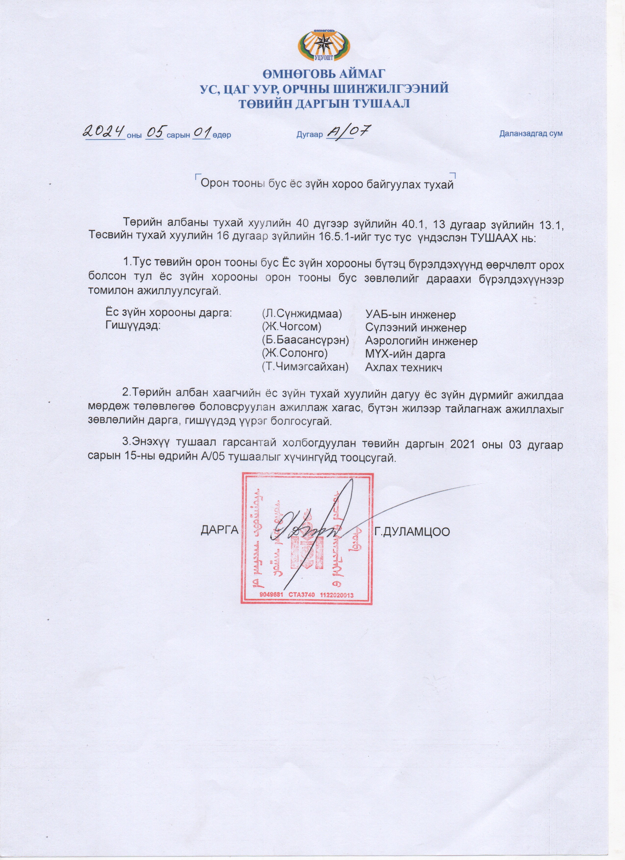 Албан тушаалын тодорхойлолт ЦУОТНэгжийн дарга